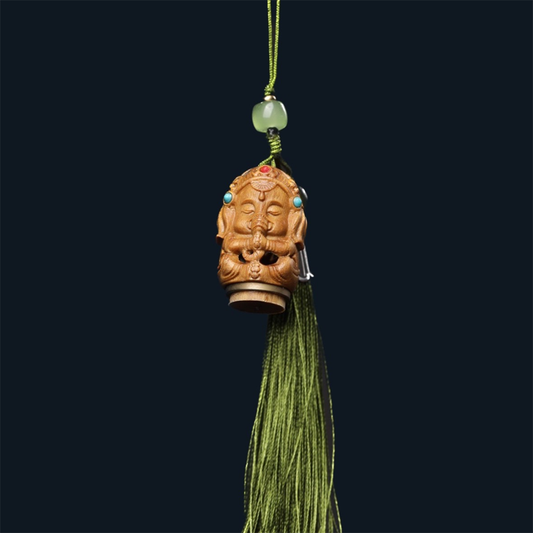 Natural Green Sandalwood Hollow Carved Elephant Head God Pendant